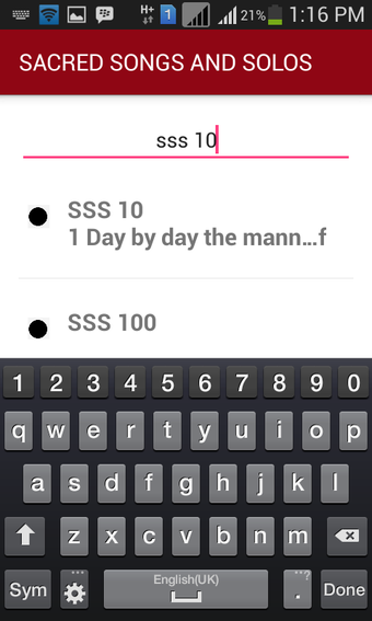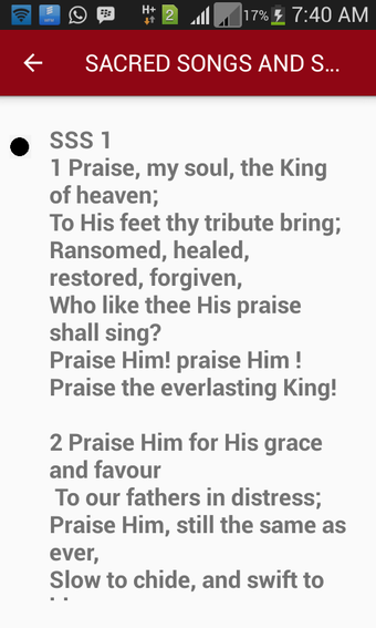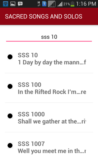 SACRED SONGS AND SOLOS, 1200 ilahi içeren bir uygulamadır. Genellikle SSS veya SS&S olarak adlandırılan bu uygulama, Hristiyanların kiliselerde ve diğer sosyal etkinliklerde kullandığı ilahilerden oluşmaktadır. Kullanıcılar, farklı etkinliklerde ihtiyaç duyulan şarkılar ve solo performanslar için bu geniş içeriğe erişim sağlayabilirler.